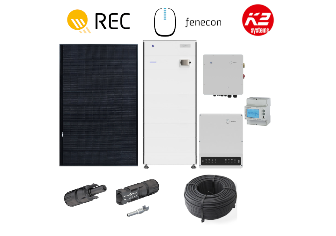 15 kWp Photovoltaik mit Speicher | REC Module + Fenecon Home 10 kW Hybridwechselrichter + Fenecon Speicher + Montagematerial