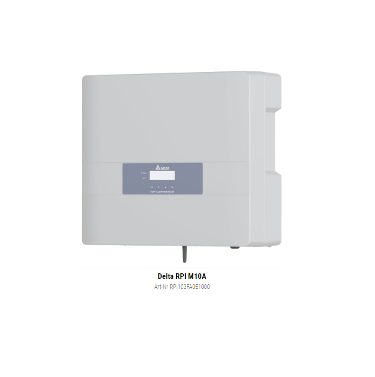 Der Delta RPI M10A ist ein dreiphasiger Solar-Wechselrichter, der durch seine robuste Bauweise und einfache Installation punktet. Mit WLAN-Funktion und einem Standard-Display ausgestattet, bietet er eine komfortable Überwachung der Anlage.