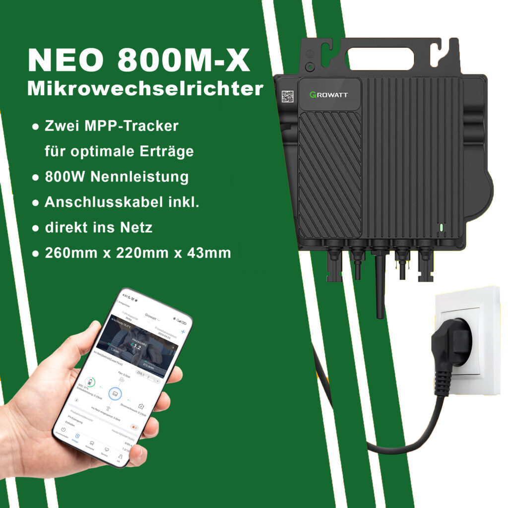 Balkonkraftwerk 820 Watt mit Growatt NEO 800M-X Mikrowechselrichter