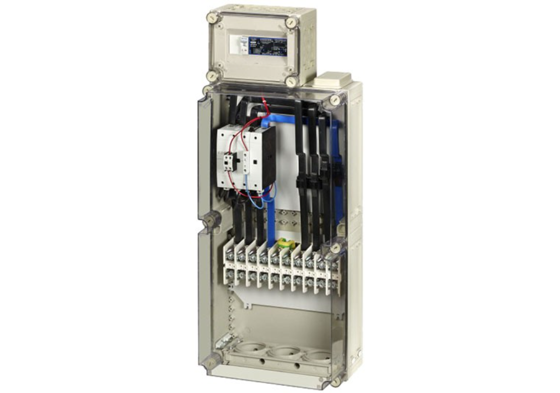 Zentraler Netz- und Anlagenschutz gemäß VDE-AR-N 4105 mit motorgetriebenem Kuppelschalter.