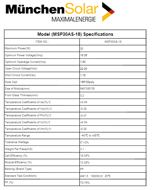 Das polykristalline Solarmodul  mit einer Nennleistung von 30 WP eignet sich aufgrund seiner geringen