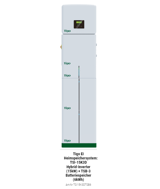 Tigo EI Heimspeichersystem: TSI-15K3D Hybrid-Inverter (15kW) + TSB-3 Batteriespeicher (6kWh)