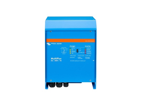 Der Multiplus 24/3000/70 von Victron (MPN PMP243020001) ist eine Gerätekombination aus 24Volt 2400Watt Sinus Wechselrichter und Batterie-Ladegerät.