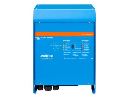 Der Multiplus 48/3000/35-50 von Victron (MPN PMP283021010) ist eine Gerätekombination aus 48Volt 2400Watt Sinus Wechselrichter und Batterie-Ladegerät.