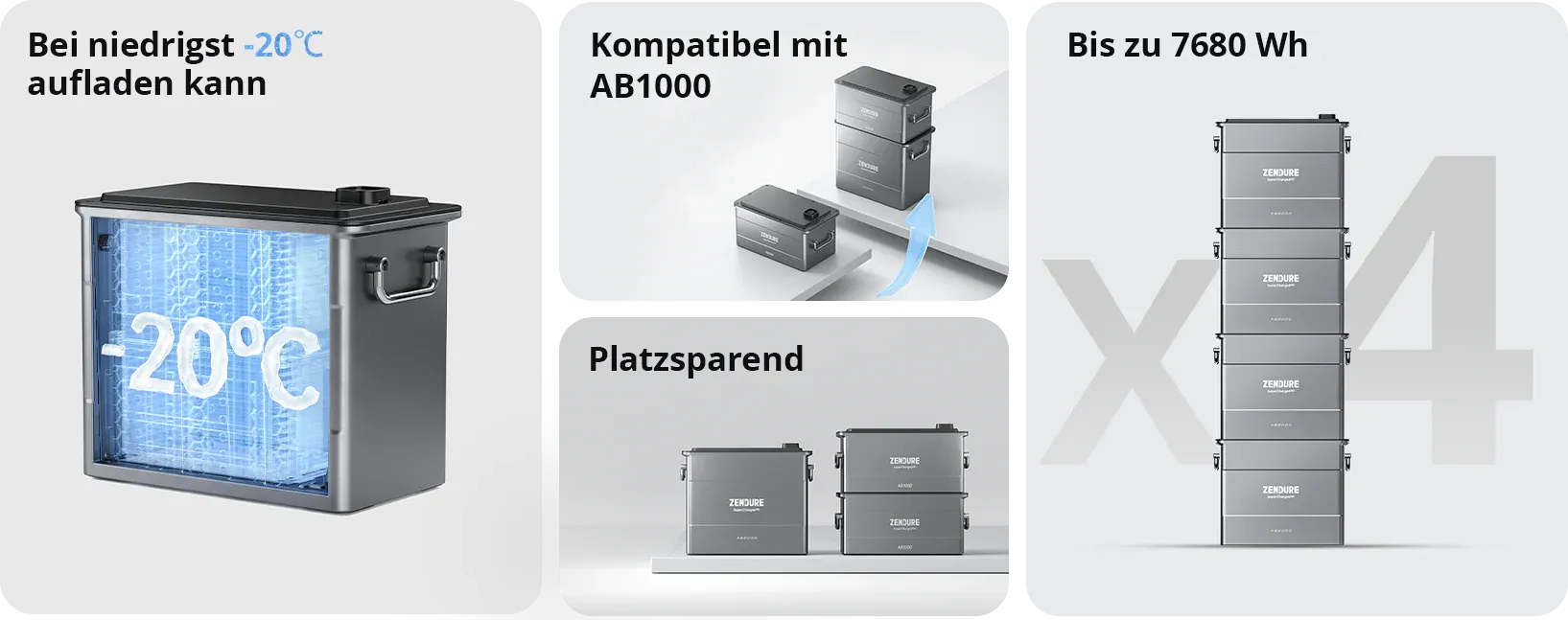 Der Zendure SolarFlow AB2000 bietet eine nahtlose Integration in bestehende Balkonkraftwerkssysteme und benötigt minimalen Platz, ohne störende Kabel. Dank des stapelbaren Designs maximiert das System den verfügbaren Raum und spart Kosten, was es ideal für jeden Balkon oder Garten macht. Es verwandelt Gartenhäuschen in nachhaltige Produktivitätszentren für Heimwerkerprojekte oder Lagerung und ermöglicht eine effiziente Nutzung von Räumen. Mit der IP65 Wasser- und Staubbeständigkeit bietet SolarFlow zuverlässige Leistung und kann mit bis zu 4 Akkus auf 7680Wh erweitert werden. Das universelle MC4-Schlauchdesign garantiert volle Kompatibilität mit Solarmodulen und den meisten Mikrowechselrichtern und ermöglicht bei Bedarf eine einfache Aufstellung, Demontage und Verlagerung.